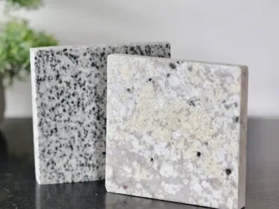 Granit ist besonders hart, hitzebeständig und widerstandsfähig gegenüber Kratzern. Im Vergleich zu anderen Materialien bietet er eine einzigartige Ästhetik und Natürlichkeit.