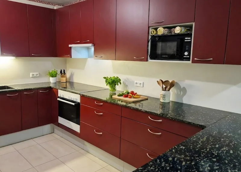 Unsere Kirsch-Schwarz Granit-Küchenarbeitsplatte verschmilzt zeitlose Eleganz mit auffälligen Highlights. Die tiefe schwarze Grundfarbe wird durch subtile, rote Akzente betont, was einen modernen und lebendigen Kontrast schafft. Diese Arbeitsplatte kombiniert kraftvolle Ästhetik mit Robustheit und verleiht Ihrer Küche einen unverwechselbaren und zeitgemäßen Charakter.