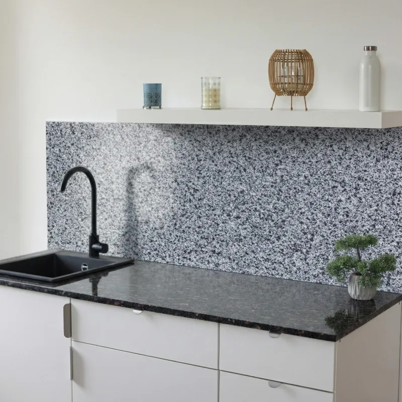 Mit unseren Granit-Look-Rückwänden erhält deine Küche ein edles, nahtloses Gesamtbild – ganz ohne Kompromisse bei Optik oder Funktionalität.